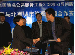 在发布会现场,北京向导和北京城市管理广播合作签约,合作推出电波服务:市民可通过北京城市管理广播(FM107.1、AM1026)9:00-9:30《北京万事通》节目和17:00-18:00的《欢乐城》节目来咨询路线。