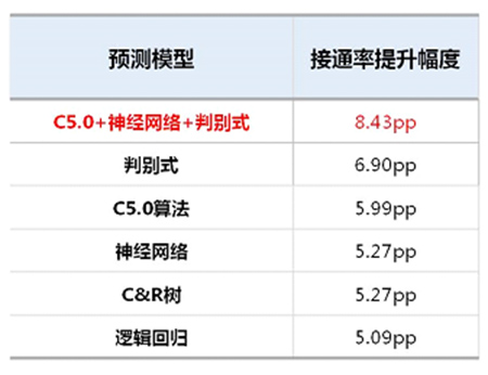 接通客户是电话营销得以开展的立身之本,使用数学预测模型可有效提升外呼接触的精准度。选择不同模型和样本规模,其效果存在一定差异,建议通过多个模型对比来确定与企业情况相匹配的最佳组合。
