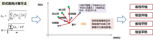 福特曾说过:如果你问顾客需要什么,他们会说需要一辆更快的马车。对于非专业的客户,他们对于哪些产品可以更好地满足自己需求往往知之甚少。大多数情况下客户使用的产品与其需求之间存在一定程度的错配并反映在消费数据中。以手机流量业务为例,在流量使用超出套餐范围的情况下办理更高档次的套餐可有效降低支出,但客户却因不了解而错失省钱的机会。佛山中心通过提取客户ARPU、MOU、DOU等消费数据与客户在用套餐包含的语音、流量内容进行对比,为每个客户输出个性化的业务办理标签,包括省钱升档、增量升档、省钱平移和增量平移4种选择,较常规随机外呼办理率提升66%,营销价值获得客户高度认可(如图5)。
