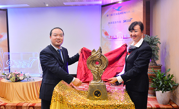 厦航95557客服中心的负责人表示,服务是厦航的金字招牌,目前厦航已连续13季度被旅客评为国内“服务最佳航空公司”。95557客服中心作为开启旅客认知厦航的第一扇窗,始终致力于打造“沟通零距离”的温馨形象,2015年话务量达到430万通,实现了中英双语7*24小时全天候服务,旅客有效投诉率始终保持全民航最低。此次 “金耳唛”奖杯永久落户厦航,是一种鞭策和激励,他们将会在夯实已有服务水准的基础上,继续锐意进取,不断创新,倡导新方法、新技能、新思维,向国际一流看齐,推动“精、尊、细、美”厦航式服务再上一个新台阶。