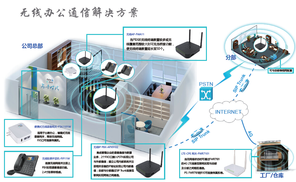 飞音时代(Flyingvoice)是全球领先的Wi-Fi IP Office解决方案提供商,拥有最完善的Wireless