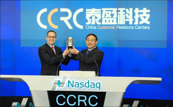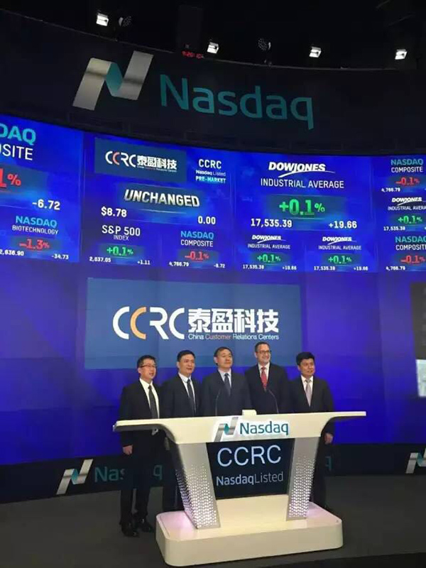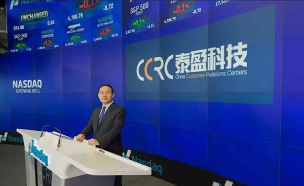 中国呼叫中心及服务外包领先企业泰盈科技(NASDAQ:CCRC)的董事会主席兼CEO王志利于美国东部时间3月29日9:30(北京时间3月29日21:30)敲响纳斯达克开市钟,以庆祝该公司进行首次公开招股。