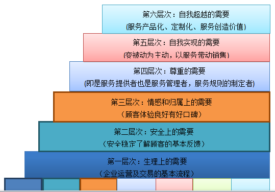 传统呼叫中心的转型是一次重新定位的过程,我把她分成六个层级,然后惊喜地发现,她与马斯洛需求理论出奇地吻合,随着层级的递增,客户中心的职能带给企业的价值、带给用户的价值、带给员工的价值以及所需要的管理手段都迈向了更高的台阶,体现了多赢的成效。