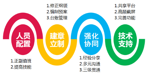 2.编制突发事件处置预案,提高应急处置能力。结合园区人员多、办公地点分散的现状,编制《监控中心话务应急实施细则》及《各类突发事件处置预案》,将各类突发事件(包括系统异常、断电、空调故障、警报及火灾、网络终端故障、交通、食品安全、传染病、员工思想波动等)应急管理分为预防、准备、响应、恢复四个阶段,站在现场调控第一负责人的角度,提出切实可行的处置方法,以便遇突发事件时提早预估、快速反应、自如应对,最大程度预防和降低损失,为实现平稳运营提供理论导航。