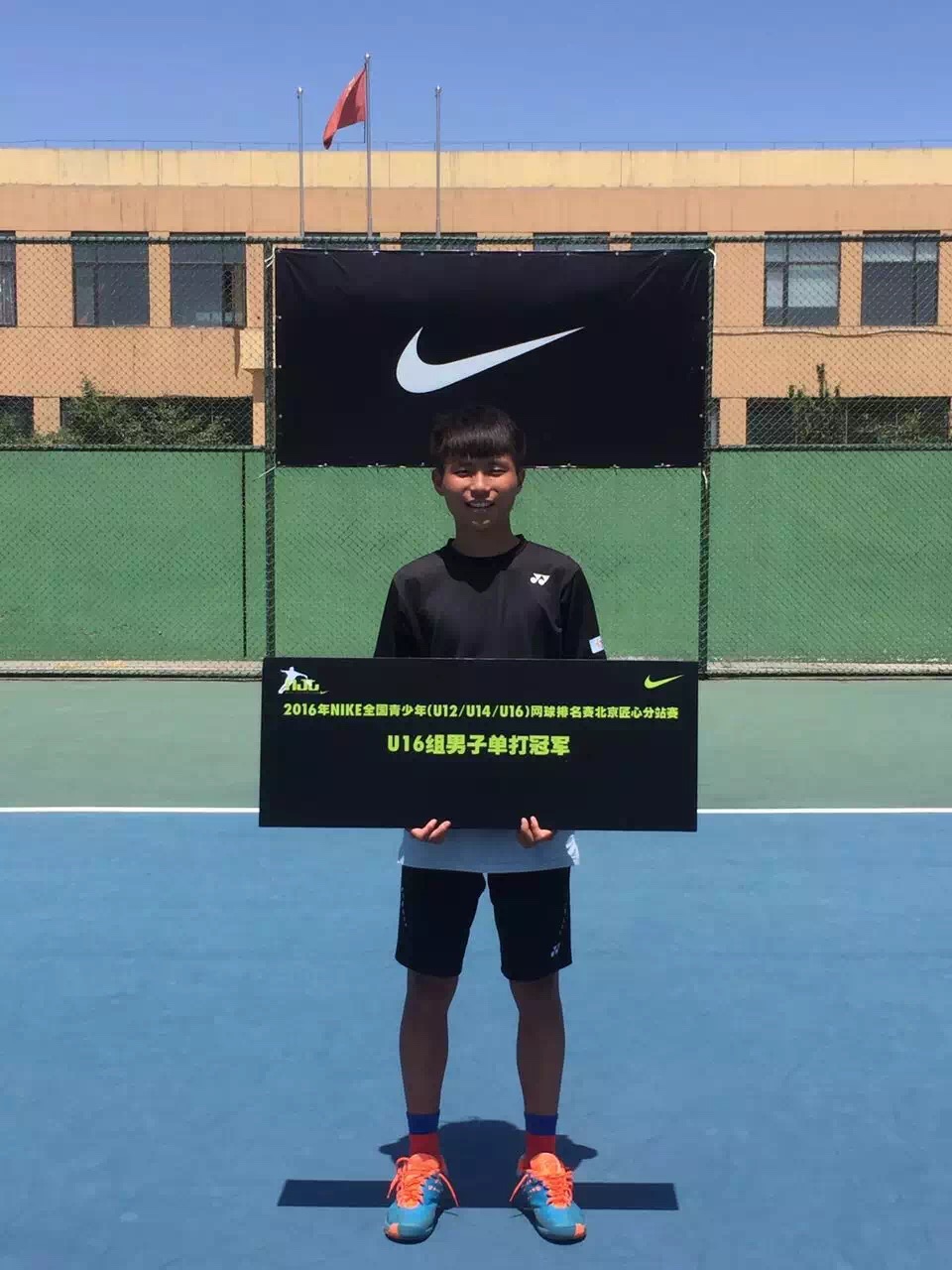 近日,2016年全国青少年网球排名赛U16在北京匠心之轮网球学校落下帷幕。来自浙江杭州的网球小将王晓飞喜获单打冠军,双打第三名。