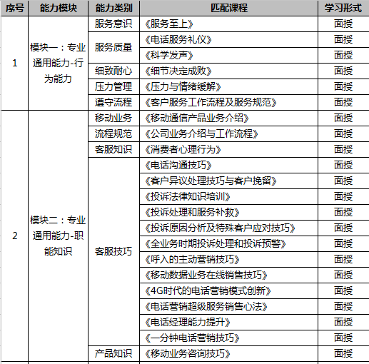 附表1-客服人员模块学习列表