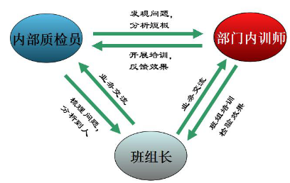 部门内训师与质检员互为业务管理工作的首尾端,加强这两个岗位的工作衔接和沟通十分必要。内部质检员将 质检过程中发现的主要问题、主要班组进行分类归纳,定期反馈至部门内训师,以之作为内训师开展培训和对接的依据;内训师会根据近期新业务内容、 质检员反馈来制作案例课件开展针对性培训,并实时将培训进度告知质检员开展班组质检,以确保培训效果。这样一方面是将业务培训和质检精准化,提高 了培训的针对性;另一方面也建立了一套 PDCA循环和良性闭环跟踪机制,促进业务能力稳步提升(如图 2)。