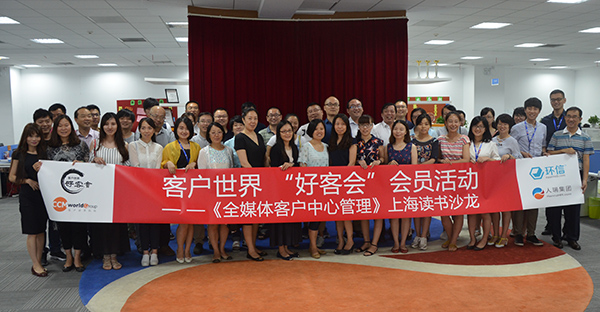 8月12日,上海。今天,由客户世界机构主办的“好客会”会员活动——《全媒体客户中心管理》上海读书沙龙在太阳CITY圆满举行。本次活动由环信公司和人瑞集团支持协办,共有超过160位上海地区客户中心行业同仁出席了现场的活动。人瑞集团创始人兼CEO张建国先生和客户世界机构总裁赵溪先生莅临现场致辞。