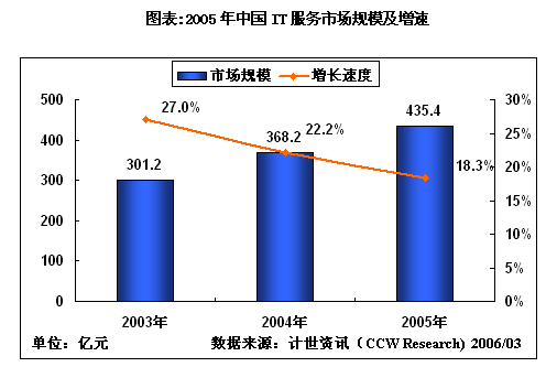 伴随着中国IT产业的飞速发展,中国的IT支持服务市场也保持着快速的发展。根据计世资讯(CCW Research)相关报告数据显示,2005年,中国的IT 服务市场的增长速度达到了18.3%,其中支持服务市场的规模为218.7亿元,比2004年增长了17.6%。硬件支持服务仍然是IT支持服务市场的主体,占据了支持服务总体市场71%的份额。