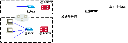 在大客户中心配置较高端的MSTP设备,在大客户接入机房配置MSTP接入设备,通过各种接口接入大客户的业务,然后使用STM-1(或STM-4光口)接入到运营商的本地SDH网,最后在汇聚MSTP进行二层汇聚,由FE/GE业务端口接入大客户中心网络。本方式是目前最简单实用的大客户专网方案,网络结构如图4所示。