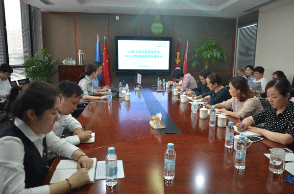 2017年06月26日,上海。上海市12345市民服务热线今日顺利通过CC-CMM应用级L1 认证。上海市12345市民服务热线主任陈芳、副主任蒋勇,运营经理孙冬蕾、人事经理陆春、行政经理金韵,CC-CMM标准组织执行理事葛舜卿、资深认证官姚青以及上海市12345市民服务热线各板块管理人员出席了此次会议。