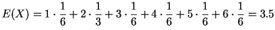 例如:生活中我们投色子, 也就是1,2,3,4,5,6每個面出現的机率都是1/6, 我们设随机变数 表示可能出现的点数即期望值,
