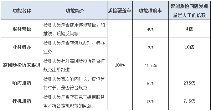 (2)热线客服智能质检表1:当前已实现的智能质检功能