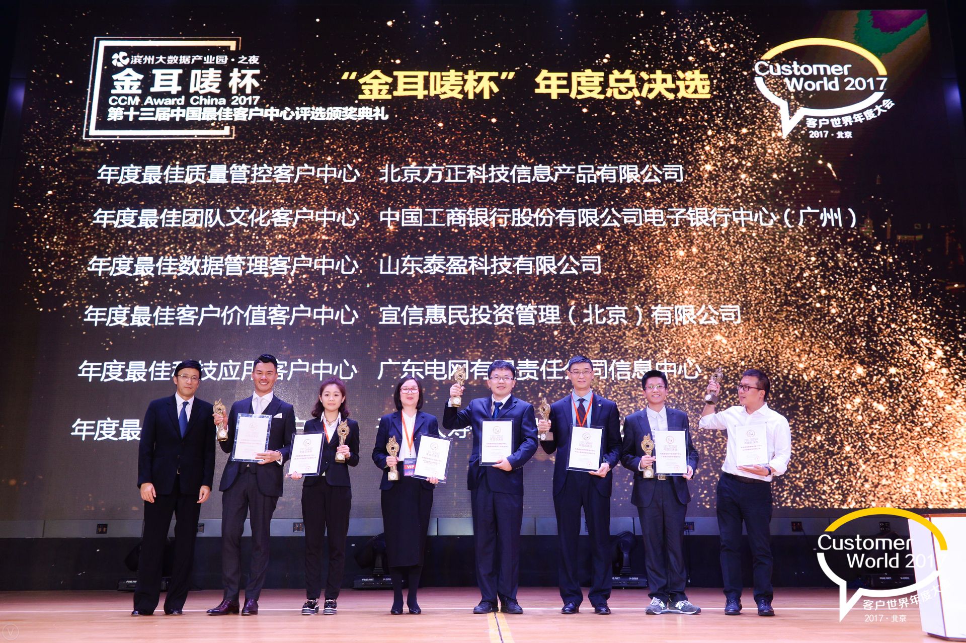 10月24日,北京。今天,国内客户中心行业历史最久、水准最高、规模最大的年度性行业会议——2017客户世界年度大会在北京荣华天地会议中心举行。以“电信九七工程”作为中国客户中心行业发展的起步标志,今年适逢行业发展二十周年大庆,当晚举行了“金耳唛杯”中国最佳客户中心评选颁奖典礼,中国工商银行、中信银行、广发银行、太平洋人寿、国家电网公司、南方电网公司、海尔集团、百度、网易、宜信、友邦保险、方正科技、科大讯飞、泰盈科技等一批知名企业客户中心获得各奖项荣誉。在“金耳唛杯”年度总决选的评选环节,广发银行信用卡客服中心脱颖而出、荣膺2017“金耳唛杯”年度总冠军。