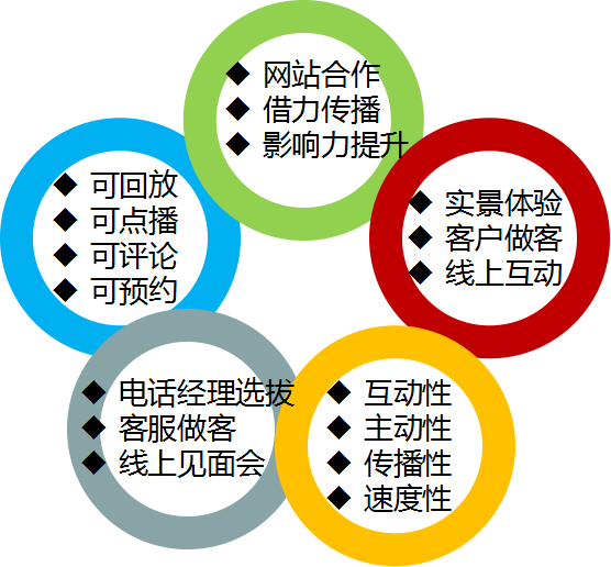 毋庸置疑,视频直播是互动营销的有效方式之一,视频与互联网相结合,形式、内容都更加灵活,创意性和感染力都很赞,产品和企业形象很容易植入视频中,通过多元化表现形式将产品功能直观地加以呈现,具有较好的视觉冲击和表现空间。