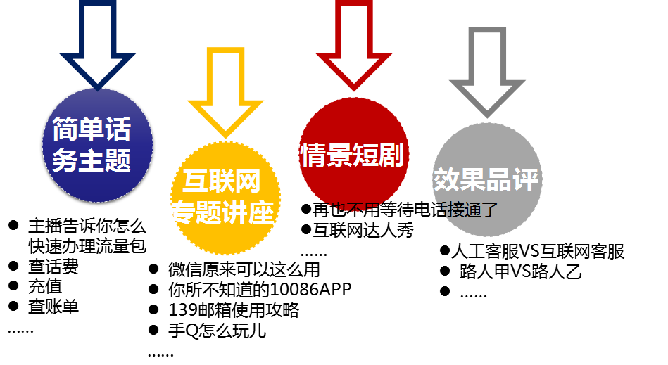视频直播形式集互动性、主动性、传播性、速度性于一体,客户之间就能够形成自传播效应,进而形成电视广告和互联网营销的双重效果。如特惠业务、最新营销活动、新研发的业务趣味游戏都可以搬到视频直播中来,通过趣味性、实用性一体化的编排形式充分还原产品卖点、直观展现操作方式,客户只需要跟着视频学、跟着视频做就可以获取自己想要的产品或服务,因此笔者认为视频直播应该开辟一个专区,打造独属于视频直播的品牌形象,设定一个专门路径让客户很容易找到;且视频直播应该具有较好的客户自主选择性,支持可回放、可点播、可评论、可预约模式,让客户充分感受到参与的自由和自主,创造优质的客户体验,吸引客户关注和分享;同时也要注重借力传播,如与一些主流视频网站合作以促进影响力提升。