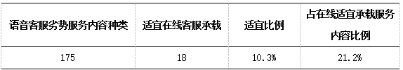 表4 语音客服劣势服务适宜在线客服承载的数据统计