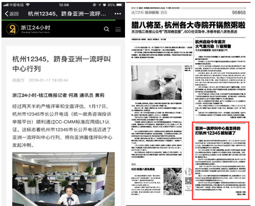 杭州“12345”市长公开电话通过CC-CMM应用级认证