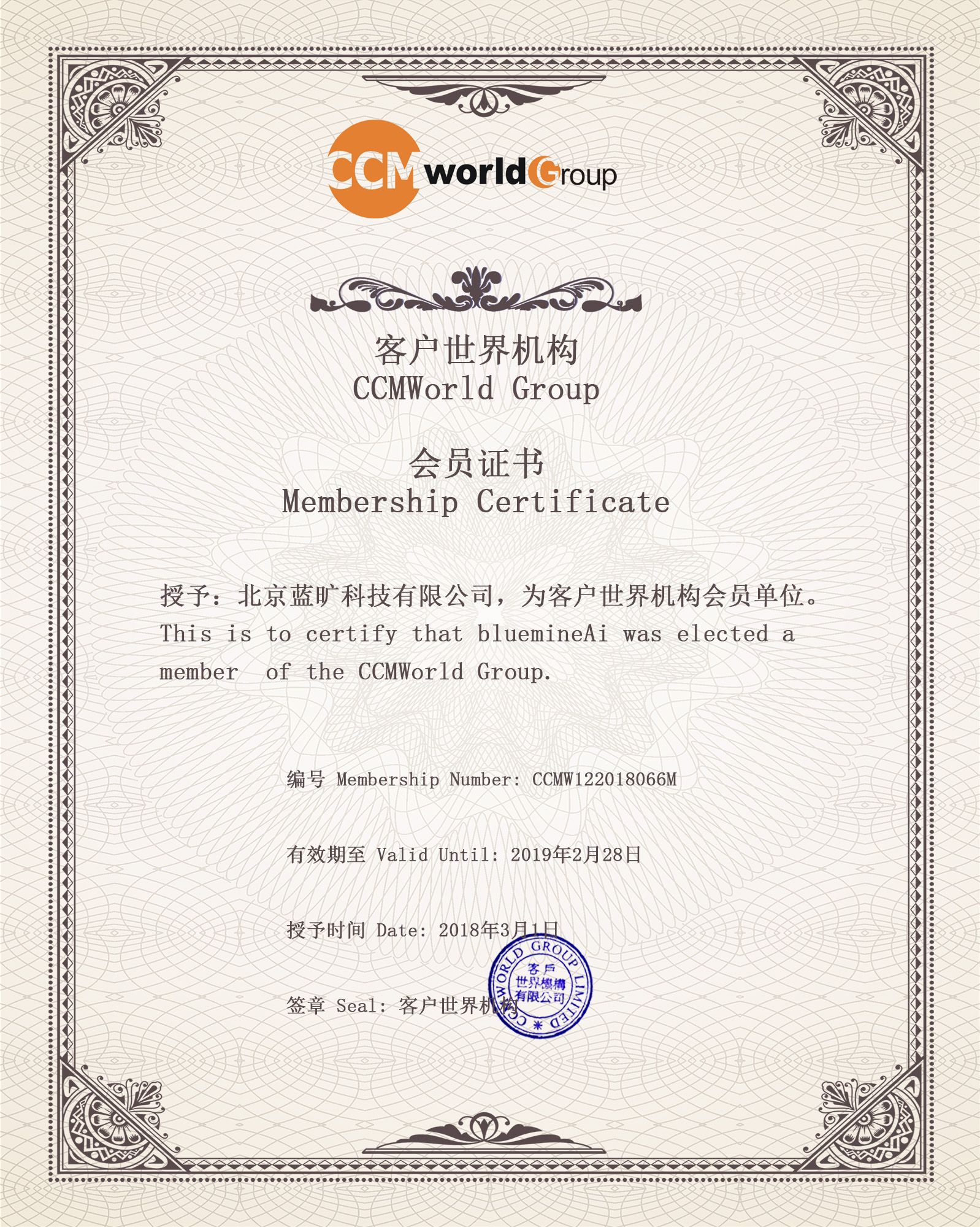 2018年3月26日,蓝旷科技公司正式成为客户世界机构2018/2019年度企业会员。
