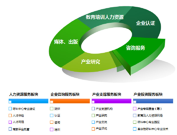 CCMWorld是一个产、学、研一体化的产业发展集团。主营业务包含四大板块——人力资源服务、企业咨询服务、产业支撑服务和产业投资服务。我们立足客户中心产业发展、专注客户管理研究方向、推动服务科学实践创新。透过媒体出版、认证测评、产业研究、管理咨询、会展服务、产业投资、教育培训、人力资源等全方位、多维度、高度整合的产业链基础业务,对相关产业发展提供支撑服务。