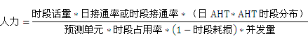 从上面的介绍可以知道预测管理的主要目的是从历史话量预测中得到比较精确的单日话量,进而得到精确的人力预测,而从单日话量到人力预测需要使用相应的人力折算方法,下面将详细介绍人力折算时使用的方法。