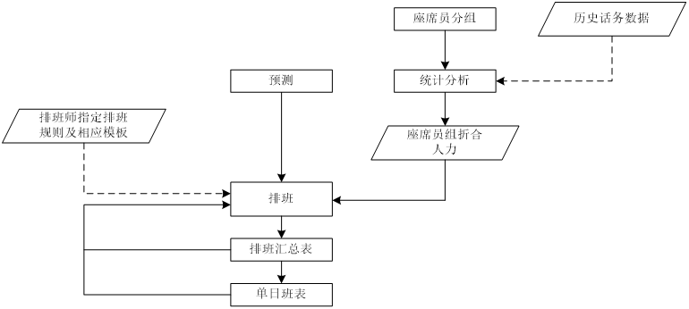 根据座席员的分组情况从历史话务数据统计分析得到座席员组折合人力,该数据可用于排班。