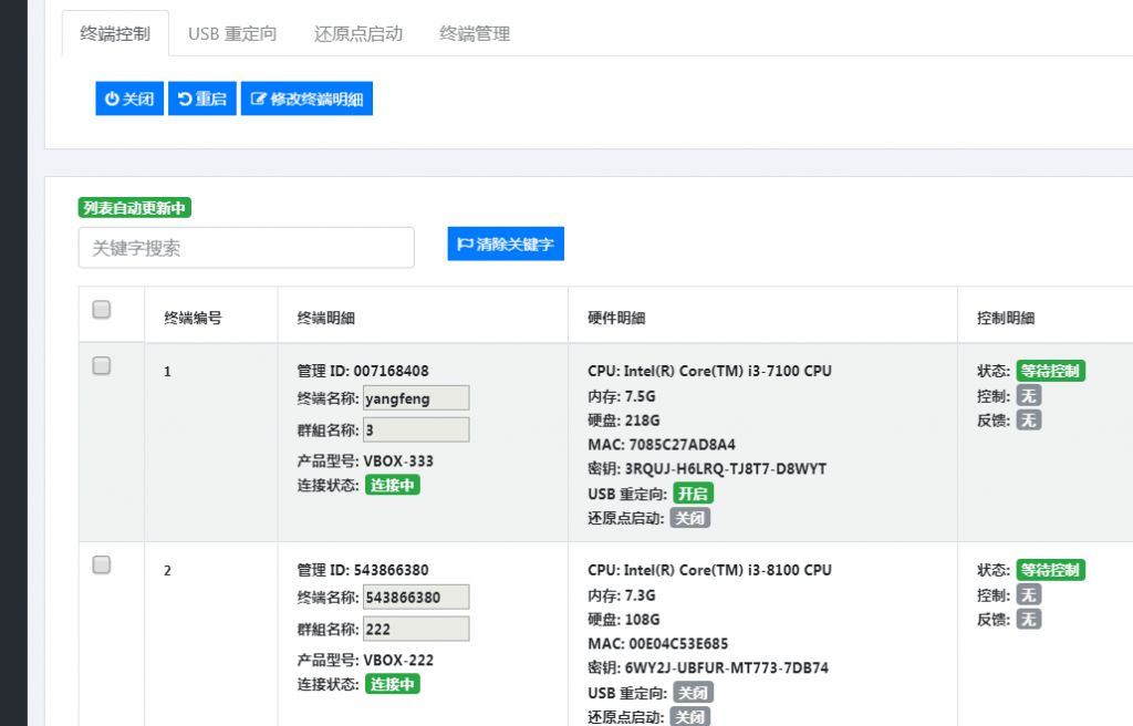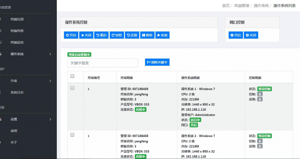 所有的晶旭云客户中心的电脑支持通过集群管理,统一开关机和系统快照还原、批量配置、批量升级,支持单个或多个网口开启和关闭 ,提升管理效率,减少管理维护人员,降低人力成本。
