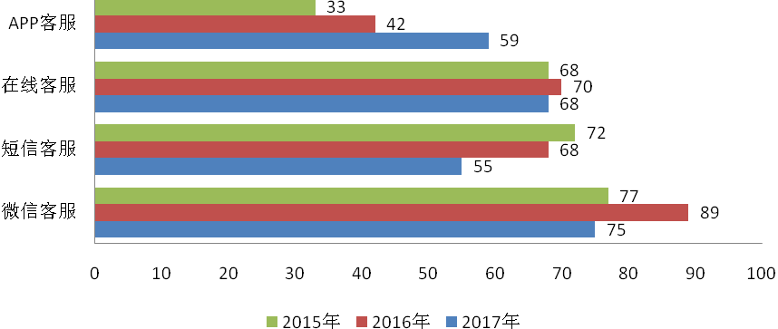 图1:2015-2017年客服中心部分多媒体渠道开通情况