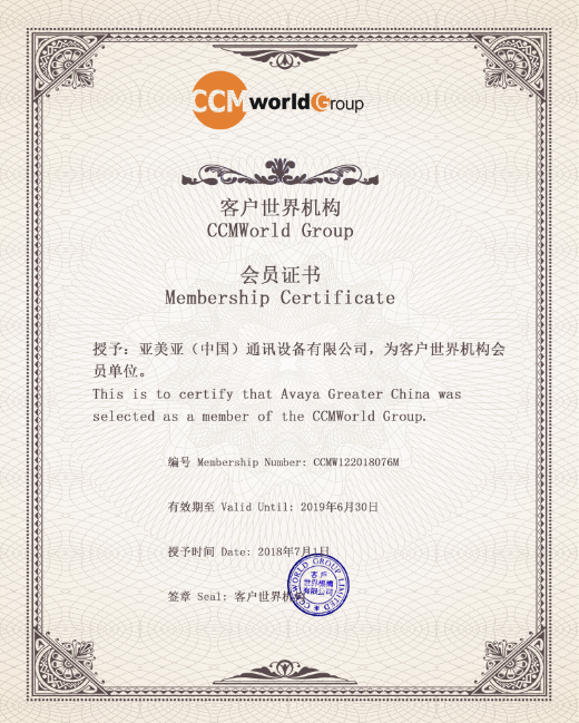 转载请注明来源:AVAYA成为客户世界2018/2019企业会员