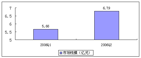 目前由于政策方面的原因,在中国涉及到PSTN的VoIP仍然是灰色地带,属于地下行为,因此中国VoIP设备市场仍然只是进入初步发展阶段,整体市场保持稳定增张态势,赛迪顾问预计2006年第三季度我国VoIP设备市场总体上仍将保持稳定增长,不会出现大起大落的局面,2006年第三季度中国VoP设备市场总量将达到约8亿元人民币。