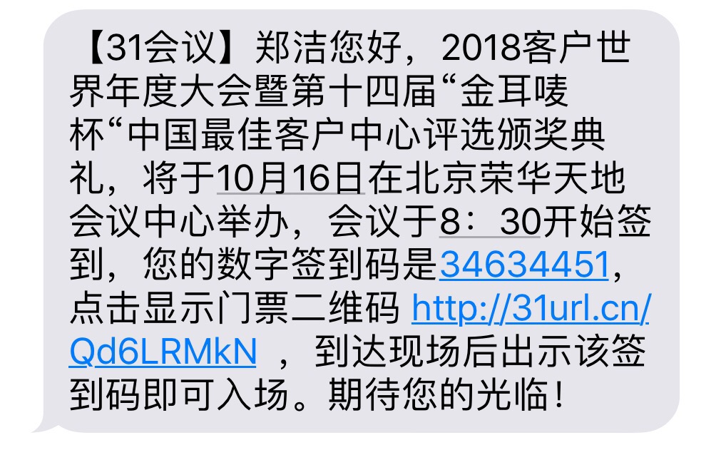 参会嘉宾奖于会前1天通过手机短信收到入场二维码信息。