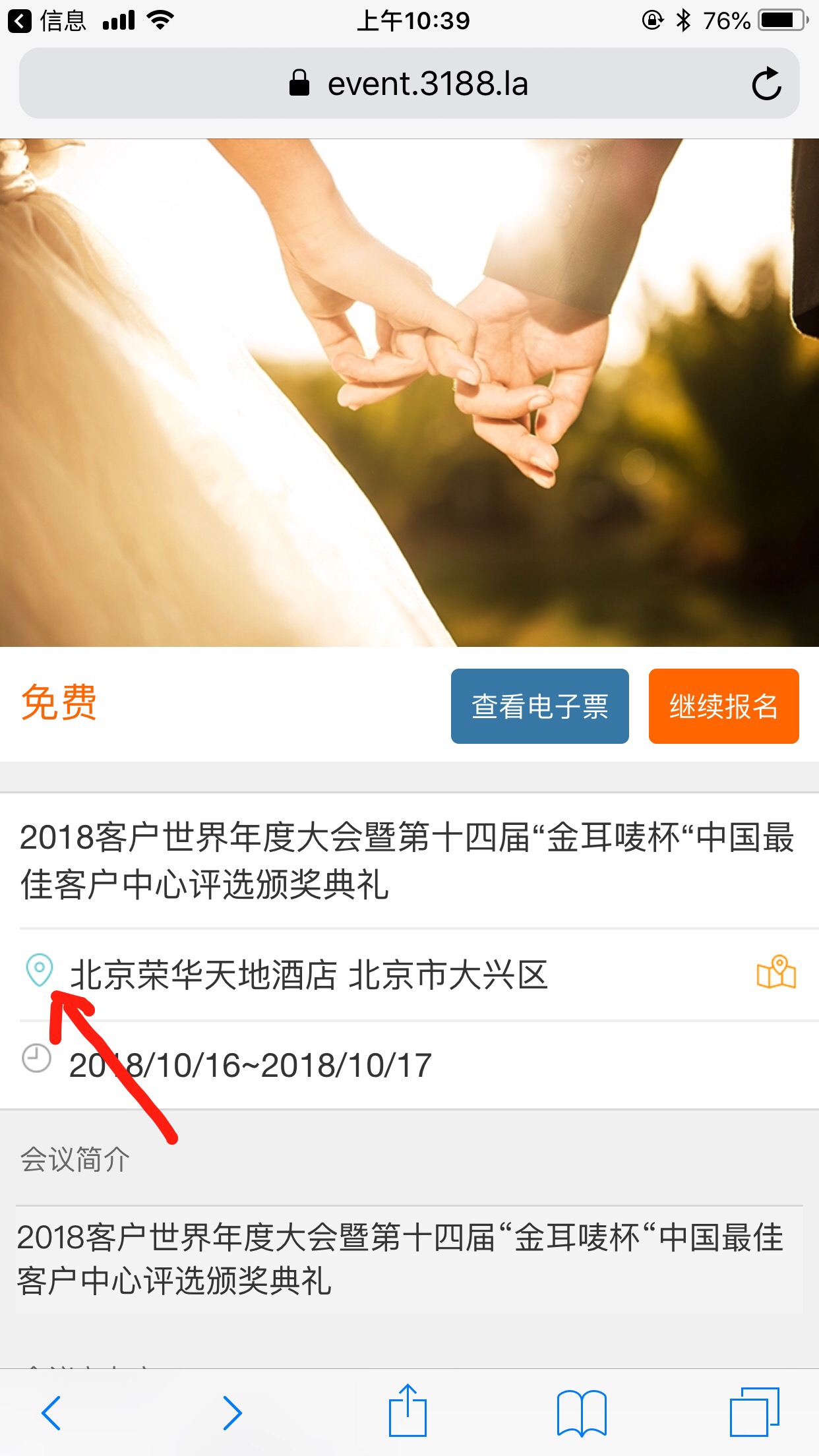 点击会议名称地址可以进入如下页面:点击箭头提示位置可以进入导航页面
