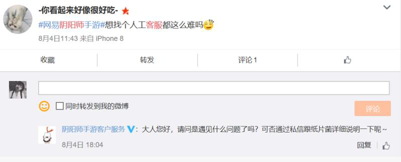 图4:上一秒还微博吐槽找不到客服,下一秒阴阳师客服就找上门来了)