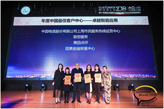 10月16日,北京。今天,国内客户中心行业历史最久、水准最高、规模最大的年度性行业会议——2018客户世界年度大会在北京荣华天地会议中心举行。当晚举行了第十四届“金耳唛杯”中国最佳客户中心评选颁奖典礼,联想集团、海尔集团、方正集团、美团点评、国美、百胜餐饮集团、百度、广发银行信用卡、中信银行信用卡、友邦保险、天安人寿、赛科斯 (SYKES)、中信国安.鸿联九五、泰盈科技、国家电网公司、南方电网公司、绿源电动车、建发地产、敦煌网、转转二手交易网等一批知名企业的客户中心获得各奖项荣誉。联想集团在本年度的“金耳唛杯”中国最佳客户中心评选中获得:卓越智能应用奖。