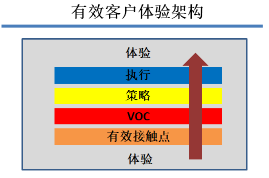 2、让客户体验更加有效、让客户体验层级越高:和客户的“接触点”很多,但并不是每一个接触点都会产生客户体验价值,所以我们必须要分析挖掘有效的“客户体验接触点”,针对每一个关键接触点,做好愉悦的客户体验管理。同时在体验式营销管理过程中,努力将客户体验层级提高,让客户拥有愉悦的客户体验。在落实执行有效客户体验的营销过程中,可按照图6架构模式进行梳理、执行、归纳总结,从客户体验中来再回归到更高层级的客户体验中去。