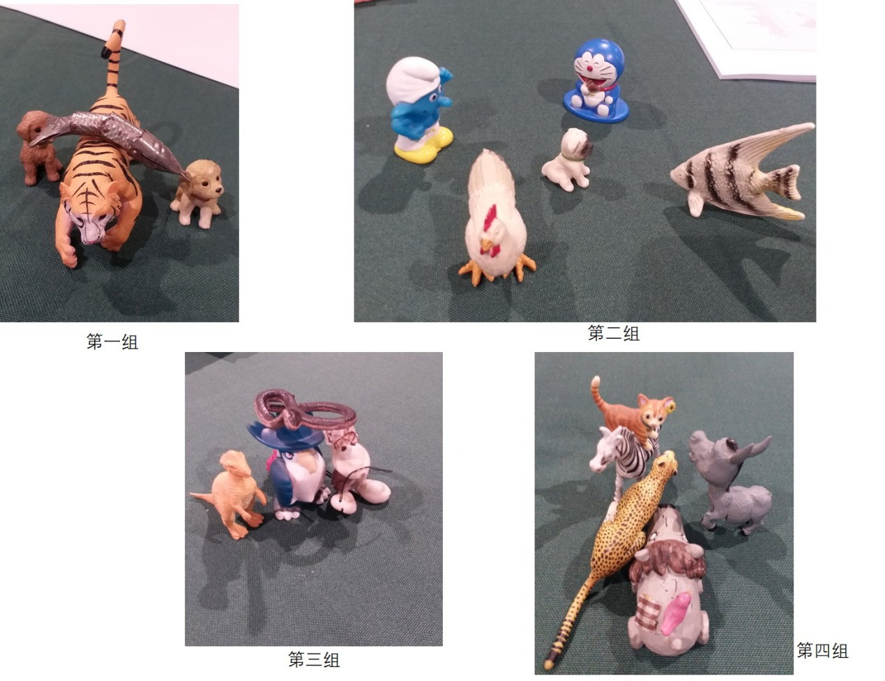 然后我请他们以组为单位分享自己选择这个动物的原因,并摆成了一个动物雕塑(如图4)。