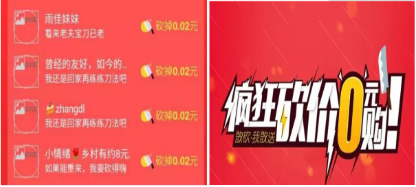 拼多多切入电商时,推出了一个“内行人”看来起挺“LOW”挺俗的团购模式:“0元购”。针对初入拼多多的新用户有两三次的“0元购”机会 ,只要凑齐一定数量帮我砍价的微信朋友,就能获得免费且包邮的货品,拥有一份心仪的商品,金额从几元到几千都有,能不心动吗?