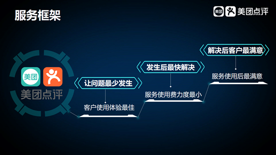 服务体验并非从服务开始,而是从用户接触产品开始。用户与企业的交互在服务之前就结束才是好的体验,最完美的服务是没有服务。向前一步,从产品的“生产”过程中就将用户会遇到的问题避免掉,让用户的产品使用过程更平滑更顺畅,最大程度上降低用户主动寻找服务的可能,是美团点评服务体系的第一个层次。