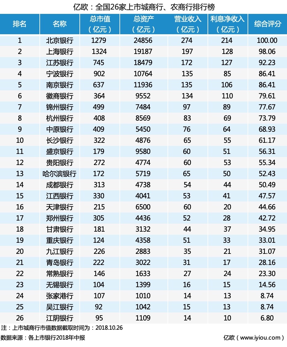 26家上市城商行、农商行排行榜出炉,地方商业银行的春天到了?