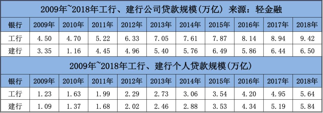 建行加注个人贷款,对其公司贷款的规模是有影响的。在2016年,建行公司贷款比前一年减少了6000多亿元,2017年恢复正增长,2018年的新增量还不及上一年。