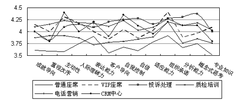 对A类员工与D类员工对各项胜任特征符合程度的差异进行显著性检验,结果表明在99%水平上具有显著差异的胜任特征是员工的分析能力,在95%水平上具有显著差异的胜任特征包括:成就导向(包括重视次序和主动性在内)、自信、适应能力和组织承诺,在90%上具有显著差异的胜任特征包括:人际理解力、表达能力、客户服务导向和自我控制,概念式思考和专业知识在90%水平上的差异仍不显著。可以认为在90%水平上客服员工应该具备成就导向、人际理解力、表达能力、客户服务导向、自我控制、自信、适应能力、组织承诺和分析能力等九项胜任特征。