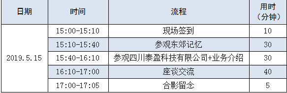请确认前往四川泰盈参观的单位负责人,于2019年5月12日(星期五)12:00前报名并通过会务组确认。