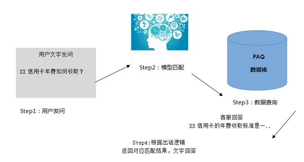 交互的形式主要以文本对话为主,在一个智能问答的界面上,用户通过手动输入问题,机器人通过算法模型的匹配,预测用户问所属的问题范围,然后选择信心分值最高的标准问题,最后输出标准问题的答案,像这样的一个完整的问答对,机器人的反应时长往往在1s之内即可完成。