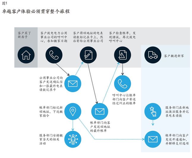我们再以一家欧洲能源零售商为例,该公司发现客户对“搬场”路程出格不对劲,这也是客户流掉的主要原因。公司调剂了一个跨职能团队(服务、发卖、营销和it),但愿从客户角度领会路程中的哪些处所激发了客户的高度不满。该团队发现,为这项根基路程供给撑持的各个职能和部分都表示欠安。