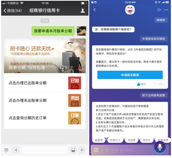 追一科技的智能机器人,在招商银行信用卡微信、手机QQ、App等多渠道落地服务,准确率超95%。同时,依托深度学习等技术,实现后台的手工模板运维向机器监督学习的自动化运维升级。