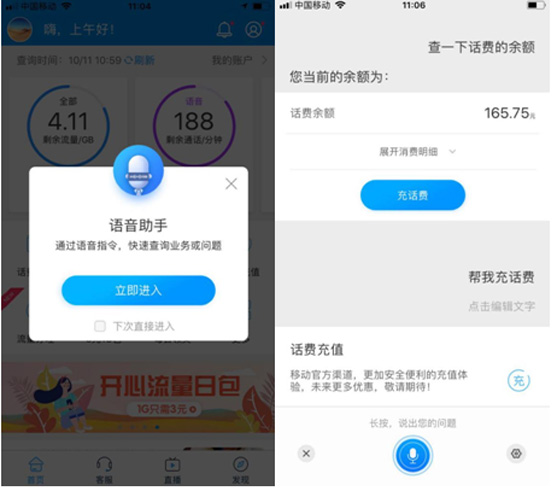 中国移动数以亿级的用户,通过语音交互的方式,可以轻松便捷办理充话费、流量等多种业务,实现从“对话”到“服务”的智能化体验。