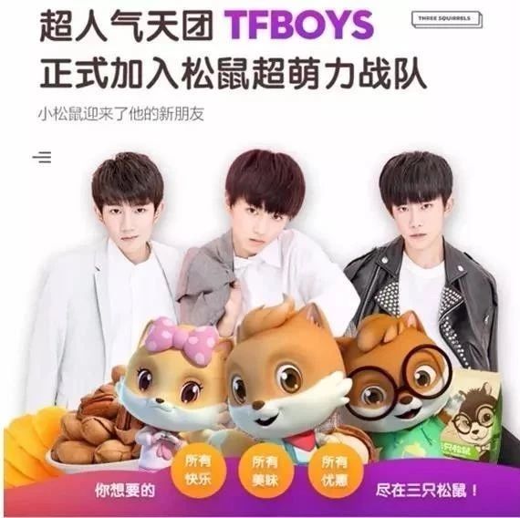 三只松鼠将自身IP与TFBOYS的明星IP相结合,通过流量和粉丝经济,实现了企业的曝光和转化。