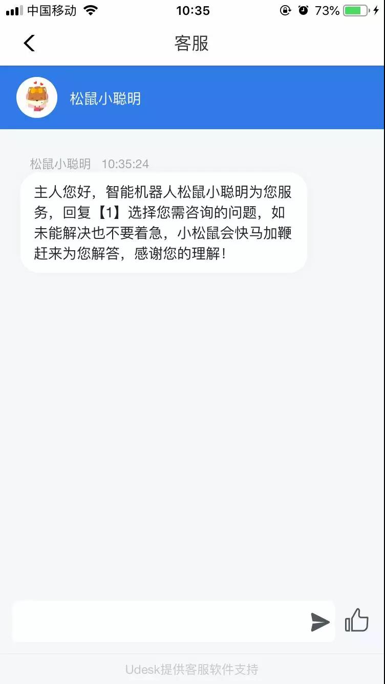 三只松鼠在“松鼠小店”APP接入Udesk全渠道在线客服系统和在线机器人,涉及到订单咨询、发票咨询、售后咨询等常见问题,通过Udesk在线机器人,客户无需等待人工客服就可以快速查询到这些常见问题的回答,一旦出现机器人解答不了的问题,页面会马上弹出转人工的提醒,引导客户咨询人工客服。