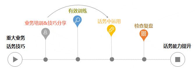 一套成功的员工培训体系,最根本的是要能做到去培训化,要做到眼中有客户、心中有能力,要学会从员工、用户、流程三大视角开展培训管理。《卖油翁》中的老翁曾有一句“无他,唯手熟尔”,揭示了培训的真谛,从理论到实践,就要不断地反复练习。想让优秀变成日常,训练是不可或缺的。想要有高质、高效的执行,与充分的训练是息息相关的。所以,在这一场能力提升赛程中,培训、分享只是起跑点,如果希望参培人员都能紧跟步伐,就需要有一群专业有素的训练师去介入做训练,这样就能保证在这个制胜的最后100米,是有人管、有人带,才能达到全员步伐一致、方向一致,甚至全员一起快速达到终点,总结一句话来说,要从培训到训练,从知道到做到,通过话务训练师来确保培训内容的整体落地,以制度保障从听懂到会用。