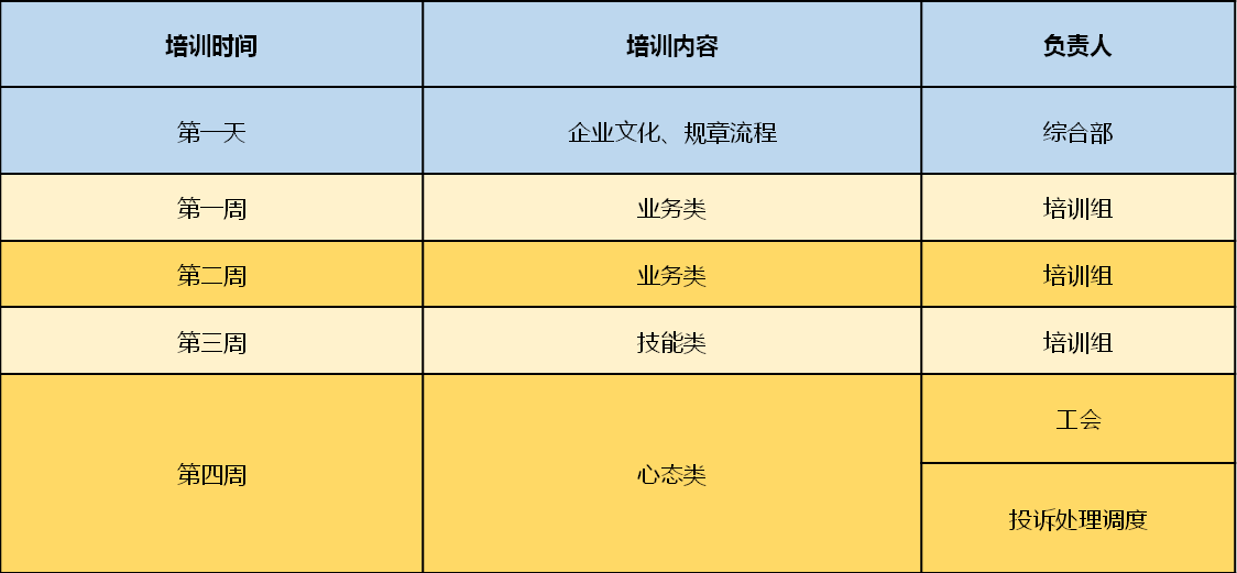 1.新员工的培训周期的优化调整,新员工应打好能力基础,周期循环渐进,根据现阶段的工作闲忙程度,适时从之前的1个月理论培训扩展到1个半月的理论加实践的体验式培训,在培训期中也有简单产出,先处理简单问题,循环渐进,减轻员工能力不足时仍要独当一面的压力,让新员工能力持续增长。在试用期接话过程中,有固定人员跟踪对新员工每日的问题进行记录和跟进,最后进行实践测试,直至适应全面接话。